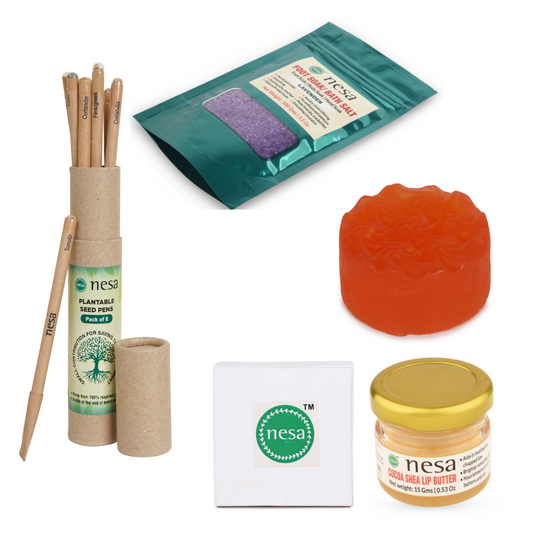 Nesa Diwali Gift Box: Plantable Seed Pen, Papaya Soap, Lip Butter & Lavender Bath Salt – Perfect Gifting for a Joyful Celebration!