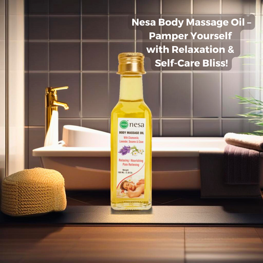Nesa Relaxation Massage Oil - Natural Blend of Chamomile, Lavender, and Clove Oils for Stress Relief & Muscle Relaxation - 100 ml | Soothing Body Massage Oil